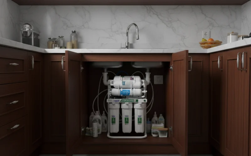 Được thiết kế tối ưu để giấu bên trong tủ bếp hoặc đặt dưới chậu rửa, máy lọc nước lắp âm là lựa chọn lý tưởng cho những không gian sống có diện tích khiêm tốn. Thiết kế này không chỉ giúp tiết kiệm diện tích mà còn mang lại vẻ gọn gàng, hiện đại cho gian bếp.