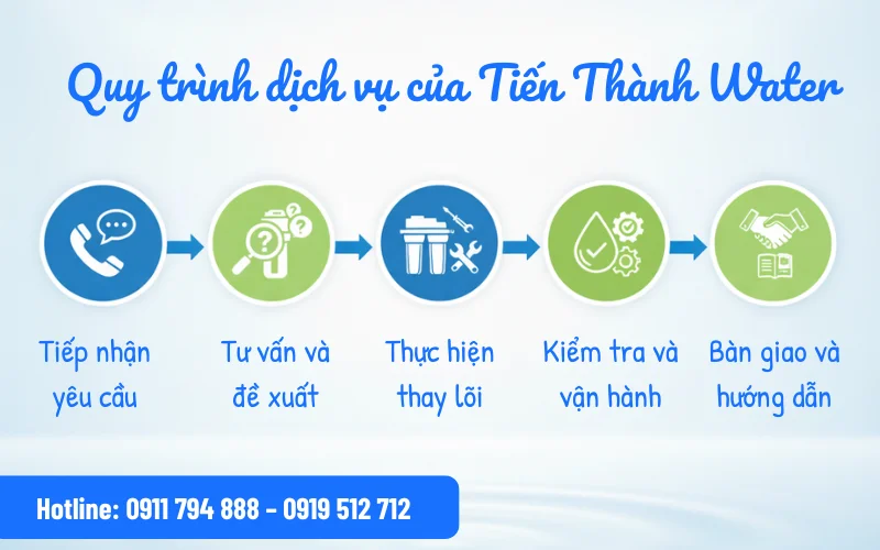 Quy trình dịch vụ thay lõi lọc nước tại Quận 1 của Tiến Thành Water