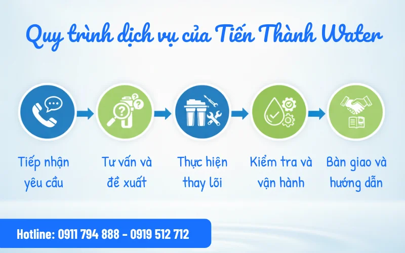 Quy trình dịch vụ thay lõi lọc nước tại Tiến Thành Water