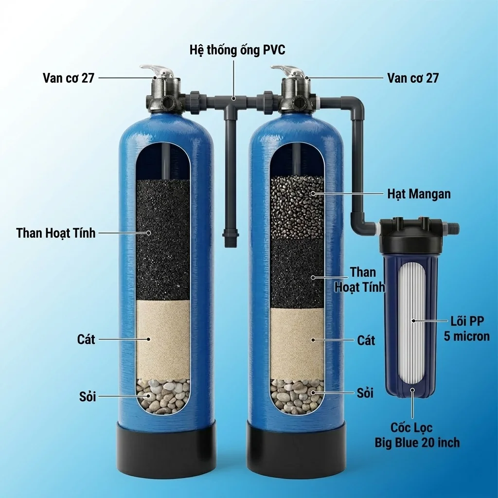 • Vật liệu lọc đa tầng tăng hiệu quả xử lý