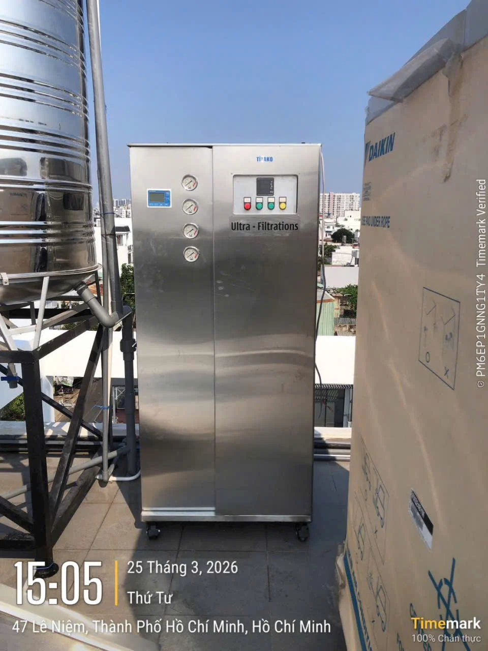 | Đồng hồ lưu lượng | Loại điện tử, hiển thị lượng nước sử dụng theo mét khối mỗi giờ và tổng lưu lượng đã đi qua hệ thống |