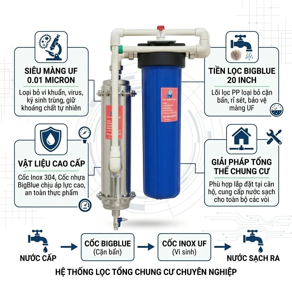 Lợi ích khi lắp đặt bộ lọc nước tổng UF Inox kèm lọc thô mini cho căn hộ