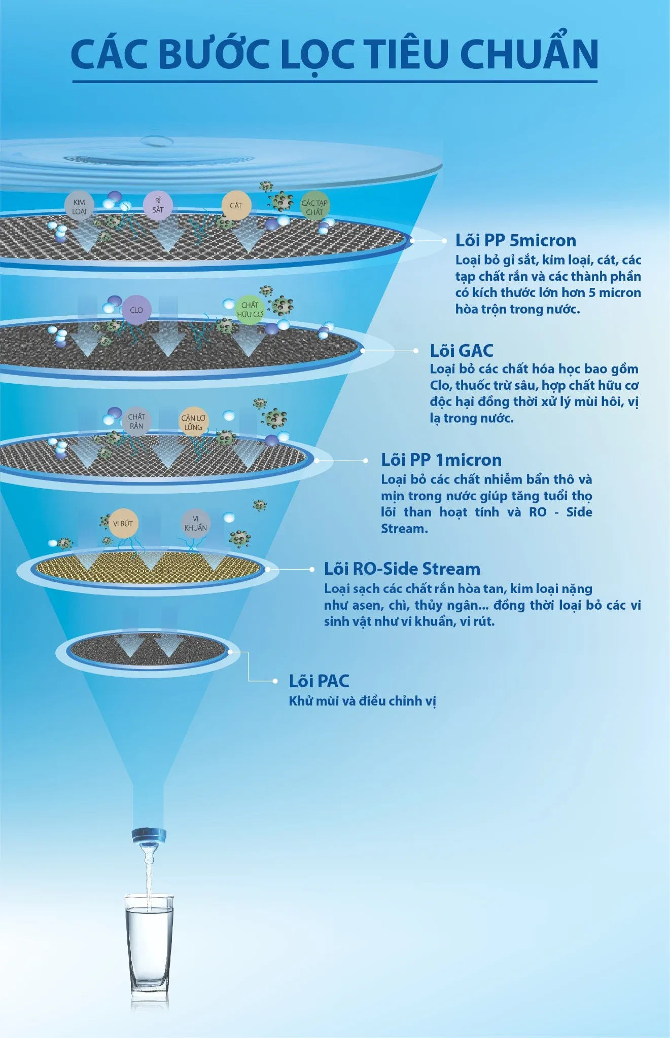 - Lõi PAC: Điều chỉnh vị, giúp nước có vị ngọt thanh tự nhiên, dễ uống.