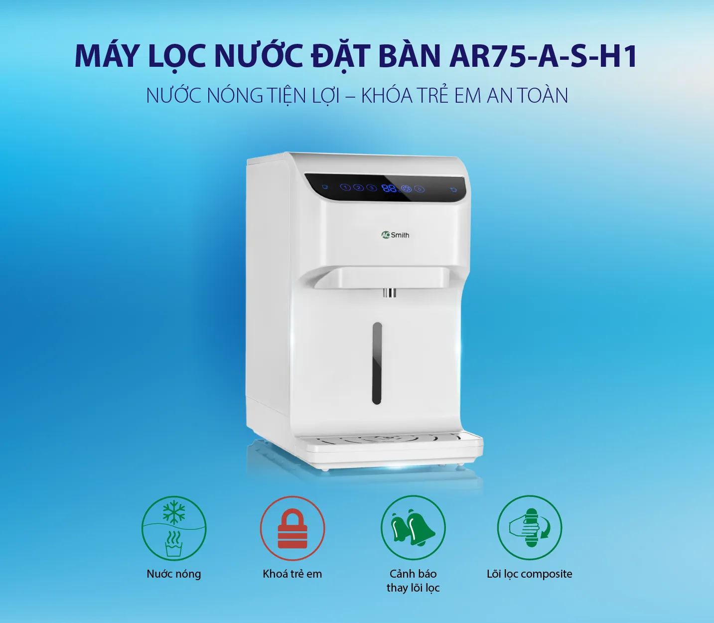 Với thiết kế đặt bàn tinh tế cùng hàng loạt công nghệ hàng đầu, Máy lọc nước A. O. Smith AR75-A-S-H1 là sự đầu tư xứng đáng cho sức khỏe và tiện nghi cuộc sống. Một sản phẩm mang lại sự an tâm tuyệt đối về chất lượng nước chuẩn Mỹ ngay tại ngôi nhà của bạn.