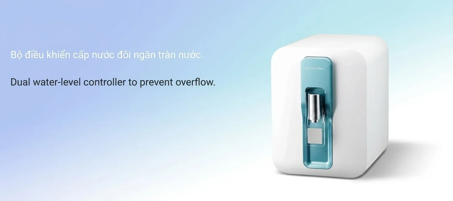 An toàn luôn là tiêu chí hàng đầu của Coway. Máy được trang bị hệ thống kiểm soát mực nước kép thông minh. Khi bình chứa đầy, hệ thống sẽ tự động ngắt nước đầu vào, giúp ngăn chặn hoàn toàn tình trạng tràn nước, bảo vệ sàn nhà và các thiết bị điện tử xung quanh, mang lại sự yên tâm tuyệt đối khi sử dụng.