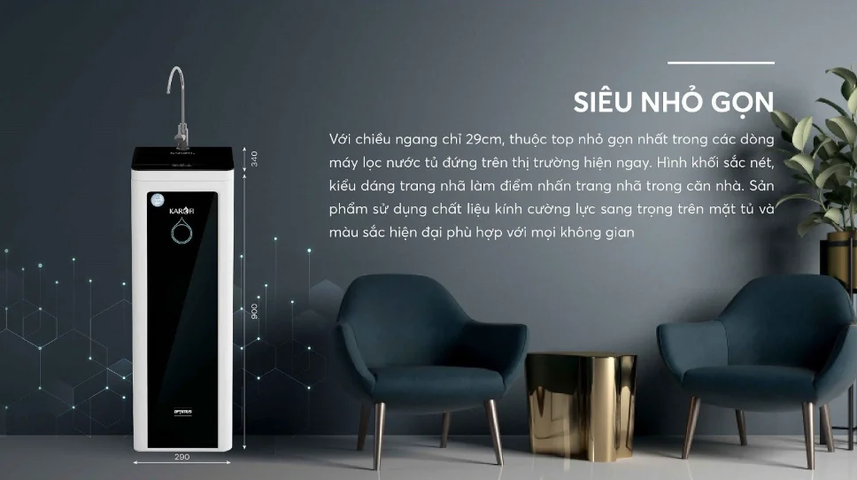 Với kích thước nhỏ gọn (chỉ rộng 290mm), Karofi Optimus Pro O-i439 dễ dàng hòa hợp với mọi không gian nội thất từ phòng khách đến phòng bếp. Tông màu đen trắng tối giản nhưng sang trọng giúp tôn lên vẻ hiện đại cho ngôi nhà của bạn.