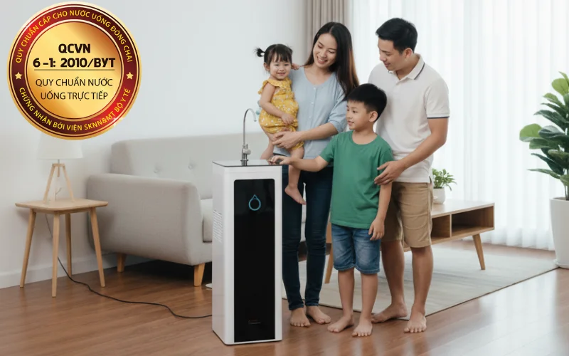- QCVN 6-1:2010/BYT – Quy chuẩn kỹ thuật quốc gia về chất lượng nước uống tinh khiết, đảm bảo nguồn nước sau lọc có thể uống trực tiếp, an toàn tuyệt đối cho sức khỏe.