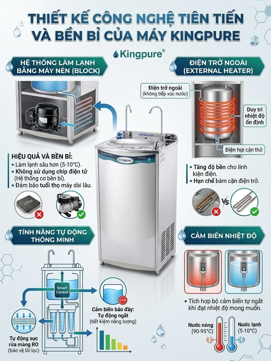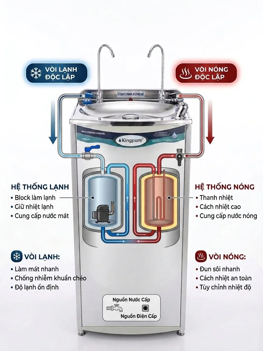 Cấu tạo chi tiết của máy lọc nước nóng lạnh Kingpure