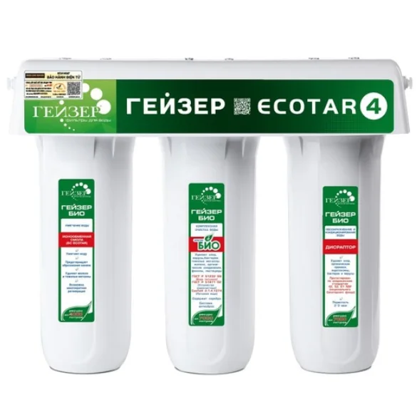 Geyser là thương hiệu máy lọc nước danh tiếng từ LB Nga với hơn 40 năm phát triển. Phiên bản Ecotar 4 là kết quả của sự hợp tác nghiên cứu giữa Geyser Nga và Minh Anh Water. Sản phẩm được thiết kế tối ưu hóa để xử lý các tạp chất như sắt, mangan, clo và các vi sinh vật độc hại phổ biến trong nguồn nước máy và nước ngầm tại Việt Nam.