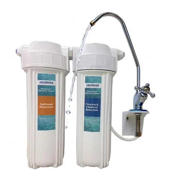 Máy lọc nước Nanoceram 10 in 2 cấp lọc được cải tiến với tốc độ dòng chảy và công suất cao , phục vụ tốt hơn nhu cầu sử dụng nước của bạn. Sản phẩm được nghiên cứu và phát triển bởi Hãng Argonide – USA – chuyên về vật liệu lọc Nano, ứng dụng trong ngành lọc nước, nhận được giải thưởng và chứng nhận danh giá: Sản phẩm ứng dụng cho tàu vũ trụ NASA ( Hall of Fame ),….