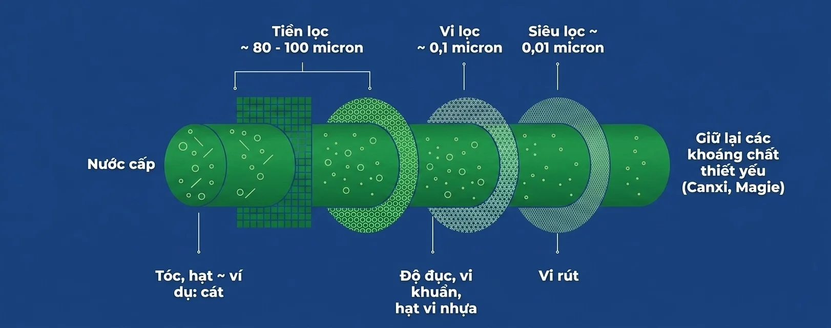 - Lý do bền bỉ: Nhờ cơ chế tự động làm sạch và sục xả thông minh, màng lọc luôn được duy trì ở trạng thái hoạt động tốt nhất, hạn chế tối đa tình trạng tắc nghẽn và tích tụ chất bẩn.