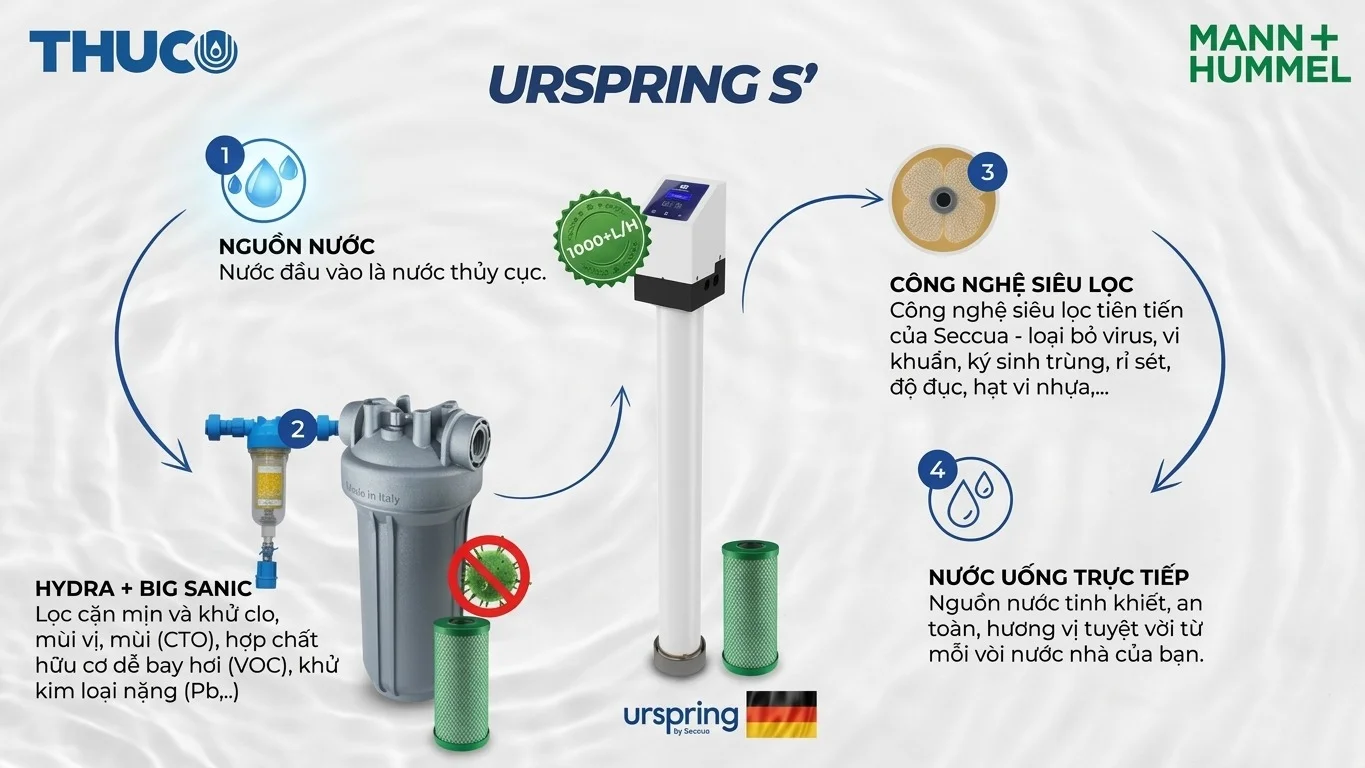 Máy lọc nước Seccua Urspring Bewell được sản xuất tại Đức bởi tập đoàn Mann+Hummel – tập đoàn dẫn đầu về công nghệ lọc trên trên thế giới.