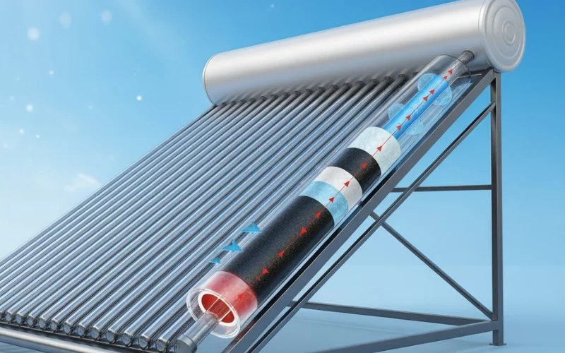 - Bộ phận hấp thụ nhiệt: Gồm 29 ống thủy tinh chân không hai lớp chịu lực, ở giữa là lớp chân không giúp giảm thất thoát nhiệt. Khi có ánh nắng, ống hấp thụ và truyền nhiệt vào nước, giúp làm nóng nhanh và giữ nhiệt hiệu quả.