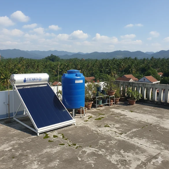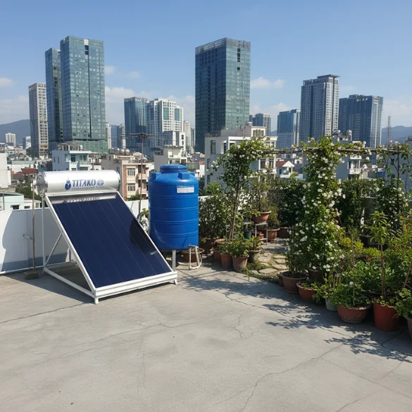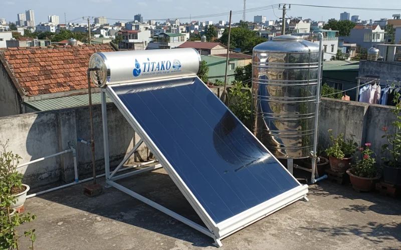 - Không gian lắp đặt: Cần không gian thoáng đãng, không bị che khuất nắng trên sân thượng hoặc mái nhà để đảm bảo tấm thu nhiệt hoạt động hiệu quả nhất.