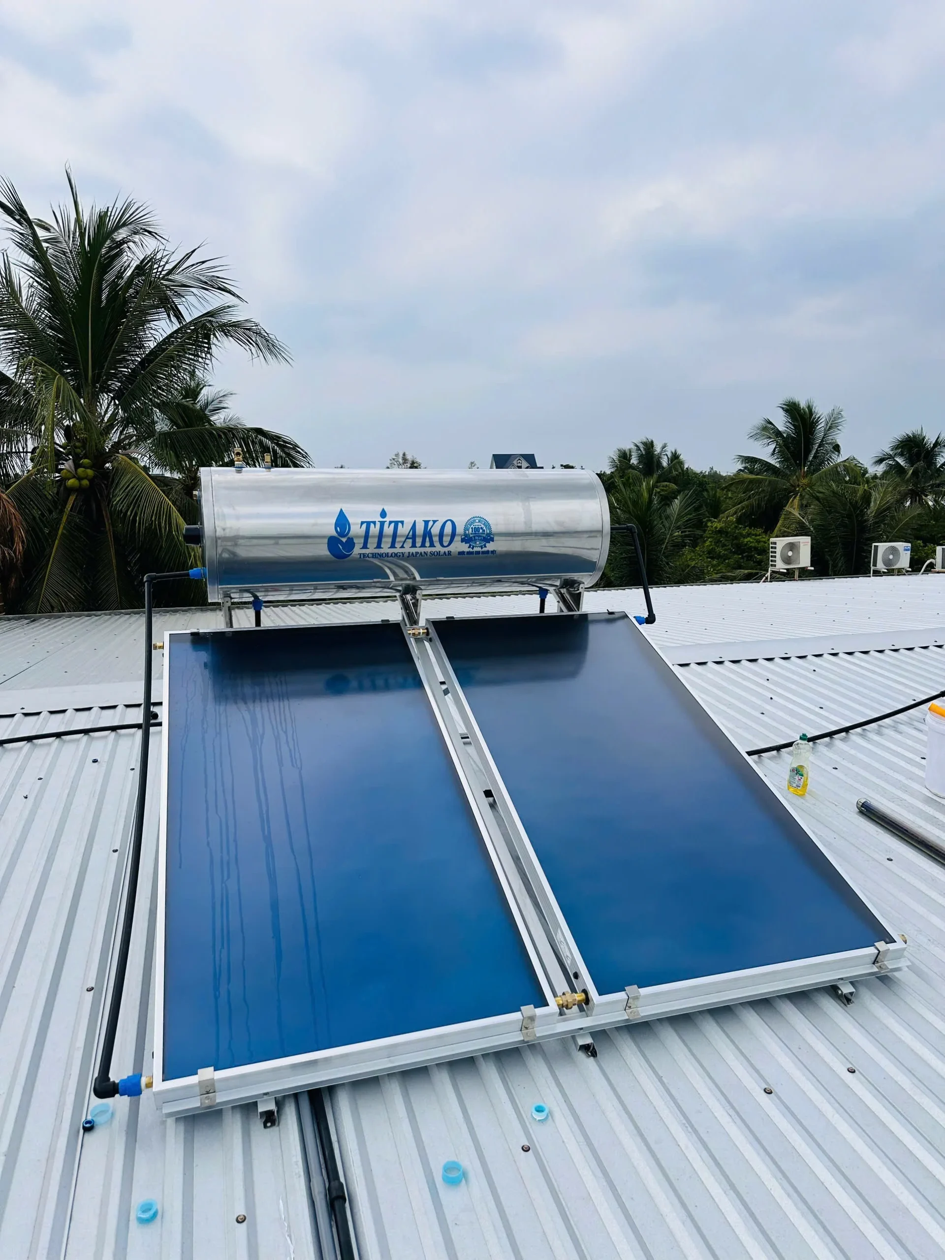 Máy nước nóng năng lượng mặt trời tấm phẳng 300L gồm 4 bộ phận chính, được thiết kế để hấp thụ năng lượng mặt trời, làm nóng và lưu trữ nước một cách hiệu quả. Hệ thống máy nước nóng năng lượng mặt trời tấm phẳng chịu áp dung tích 300 lít hoạt động theo bốn bước chính: thu nhiệt – dẫn nhiệt – tích trữ – cung cấp nước nóng. Nhờ đó, thiết bị luôn duy trì nguồn nước nóng dồi dào, ổn định và áp lực mạnh trong mọi điều kiện thời tiết. Máy nước nóng năng lượng mặt trời tấm phẳng chịu áp 300L là một khoản đầu tư thông minh, giúp gia đình bạn tận hưởng nguồn nước nóng ổn định, tiết kiệm chi phí. Hãy liên hệ ngay với Tiến Thành Water để được tư vấn và sở hữu giải pháp năng lượng xanh bền vững cho ngôi nhà của bạn.Cấu tạo và nguyên lý hoạt động