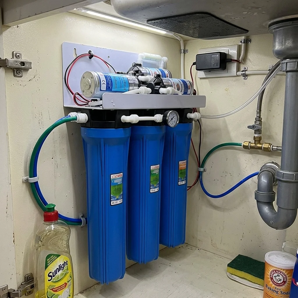 | Màng RO | 2 cái, công suất 50 L/H (300 GPD) mỗi màng |