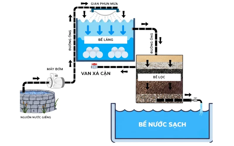 Cấu tạo và nguyên lý sắp xếp bể lọc nước giếng khoan chuẩn